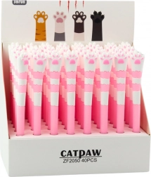 Dlhopis gélový v ružovom prevedení je unikátnym doplnkom každého peračníka alebo stola. Elastický gumový obal s dekoráciou mačacej labky zabezpečuje príjemné uchopenie a je odolný voči poškodeniu. Vďaka gélovému modrému atramentu poskytuje dlhopis plynulé a presné písanie, ideálny pre školské poznámky i kancelársku prácu. Praktická zátka chráni špičku pred vysychaním. Kompaktná veľkosť dovolí jednoduché prenášanie v taške či peračníku.