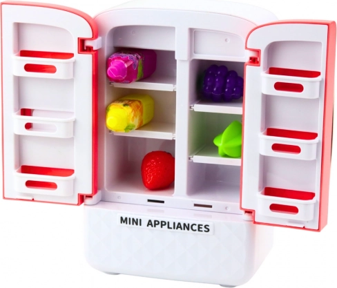 Hračka chladnička zaujme svojimi inovatívnymi funkciami a možnosťami. Obsahuje farebné ovocie, fľaše na džúsy a police k voľnému usporiadaniu vo vnútri, čo ponúka deťom rozvoj kreativity a nauku o organizácii. Ideálna je aj pre simuláciu skutočných scénárov zo života.
