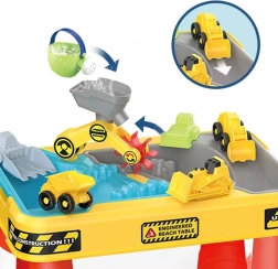 Objavte zábavu aj učenie s týmto farebným stolovým setom na hru s vodou a pieskom v stavebnom motíve. Deti môžu naraz skúmať oba svety, ovládať žeriav, spúšťať vodné rampy a jazdiť mini stavebnými vozidlami. Set je ideálny na záhradu aj domov a podporuje tímovú hru, kreativitu aj jemnú motoriku. 2v1 voda + piesok, stavebná téma, funkčné doplnky, stabilná konštrukcia, od 3 rokov.