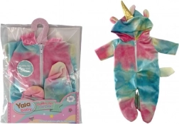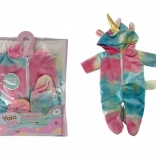 Krásny overal jednorožec pre bábiky veľkosti 40 až 43 cm. Tento módny doplnok ponúka duhové farby a zlatý roh, čo zaisťuje štýlovú zábavu pre všetky malé princezné.