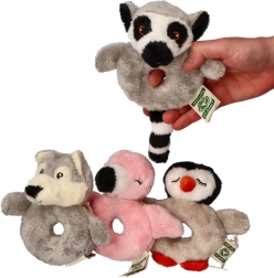 Táto plyšová hrkálka v tvare lemura kombinuje bezpečnú zábavu a pohodlie pre najmenších. Vďaka otvoru uprostred sa deťom ľahko drží aj drobnými ručičkami, mäkký materiál láka k mojkaniu a jemné hrkanie stimuluje sluch a pozornosť. Ideálny spoločník do kočíka, postieľky aj na cesty.