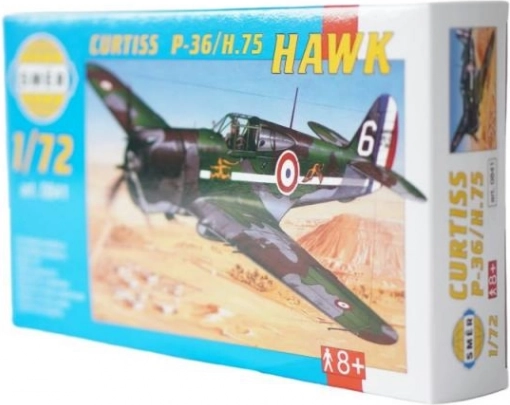 Slepovací model Curtiss P-36/H.75 Hawk v mierke 1:72. Obsahuje 44 dielikov a ponúka autentický zážitok z lepenia. Lepidlo a farby nie sú súčasťou balenia.