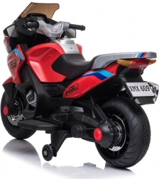 Táto športová verzia detskej akumulátorovej motorky priťahuje pozornosť nielen svojou neobvyklou farebnosťou, ale aj pevnou konštrukciou a zdobením v štýle skutočných motocyklov. Chrómované prvky štylizované ako výfukový systém dodávajú motorke na zaujímavosti a zaujmú každé dieťa. Bočné kolieska uľahčujú ovládanie deťom, ktoré sa ešte len učia držať rovnováhu. Táto zábava nebola nikdy jednoduchšia!