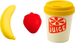 Súčasťou balenia sú aj pestré plastové ovocie: jahoda, banán a limetka, a tiež hrnček na koktejl. Všetky prvky sú bezpečné a skvele padnú do detských rúk.