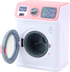 Detská práčka sa spúšťa tlačidlom ON/OFF na dotykovom paneli. Vyberte si jeden z dostupných programov a práčka začne pracovať - budete počuť zvuk nalievania vody a bubon sa otáča, ako by to bola skutočná práčka. Ďalšou atrakciou je otvárateľný predný bubon a výsuvná zásuvka na prášok pre ešte viac realistickú hru.