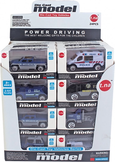 Klasické policajné auto s voľnými kolesami o veľkosti 7,5 cm je ideálnou hračkou pre malých nadšencov dopravných prostriedkov. Dostupné v šiestich variantoch v balení po 24 ks.