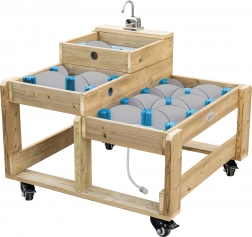 Mobilný vodný stôl umožňuje deťom experimentovať s vodou a pozorovať, ako sa správa v rôznych podmienkach. Je ideálny pre predškolákov, ktorí radi skúmajú a učia sa nové veci. Stôl podporuje rozvoj prirodzenej zvedavosti, koordinácie a logického myslenia.