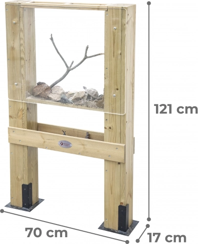 Vďaka impregnovanému ihličnatému drevu je produkt trvácny aj pri vonkajšom nasadení. Tabuľa je skvelá na rozvoj jemnej motoriky, kreativity a písomných zručností, či už v materskej škole, v školskom klube alebo na záhrade. Transparentná plocha podporuje prácu so svetlom a perspektívou – deti maľujú a zároveň sledujú okolitú prírodu.