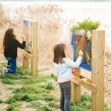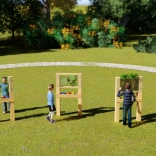 Dve číre plochy umožňujú súčasné maľovanie z oboch strán a pozorovanie prírody cez panel – ideálne pre skupinovú prácu a zmyslové vnímanie.