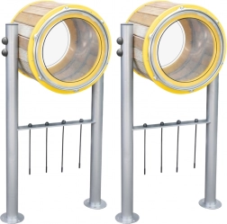 Rozhýbte ihrisko aj záhradu hudbou! Dva robustné vonkajšie bubny CLASSIC WORLD z radu EDU prinášajú interaktívnu hru pre deti od 3 rokov. Každý bubon je obojstranný, takže ponúka až 4 herné plochy pre rôznorodé rytmy. Súčasťou sú 4 paličky s praktickým odkladaním. Vyrobené z kvalitného dreva odolného voči poveternosti zo zodpovedných zdrojov – ideálny doplnok na ihrisko aj do parku na podporu kreativity, sebavedomia a spoločnej hry dvoch detí z oboch strán.
