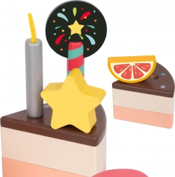 Oslavujte každý deň s nádhernou drevenou narodeninovou tortou! Dieťa môže umiestniť sviečky, niečo si želať a "sfúknuť" plameň, čím vytvorí špeciálnu narodeninovú oslavu.