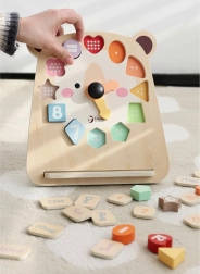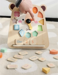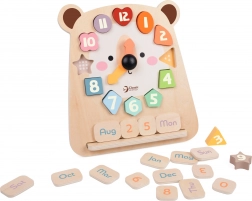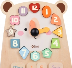 Drevené hodiny v tvare medvedíka od značky Classic World sú všestrannou hračkou, ktorá pomáha deťom učiť sa čas, dni v týždni, mesiace a rozpoznávať farby a tvary. Vďaka vyberateľným kockám s číslami a názvami môžu najmenší cvičiť koordináciu ruka-oko, logické myslenie a manuálne zručnosti.