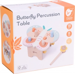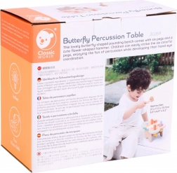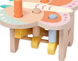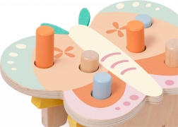 Drevený stolček v tvare motýľa je ideálny pre detskú hru, ktorá podnecuje k skúmaniu a objavovaniu zvukov. Táto farebná a pútavá forma hry podporuje vývoj motorických zručností a koordináciu ruka-oko. Sada obsahuje kladivko v tvare kvetiny, ktoré pridáva šarm a vyzýva deti k aktívnej hre.
