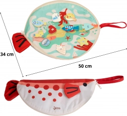 Hracia podložka v tvare ryby sa po hraní ľahko zloží na zipové puzdro, kam sa zmestia všetky komponenty. Kvalitné drevené spracovanie a bezpečné materiály zaručujú dlhú životnosť aj odolnosť pri každodennom používaní.