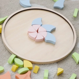 Táto drevená skladačka umožňuje deťom vytvárať neobmedzené množstvo vzorov, či už podľa predlohy alebo vlastnej fantázie. Skvelo sa hodí na samostatnú hru aj na spoločné tvorenie s kamarátmi alebo dospelými.