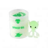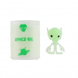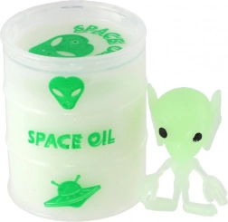 Uvoľnite kreativitu aj napätie so slizom, ktorý v tme žiari. Praktický priehľadný barel s motívom vesmíru ukrýva porciu goo/slizu a malú figúrku mimozemšťana, s ktorou možno tvoriť vesmírne scénky. Sliz je ideálny na zmyslové hranie, jemnú motoriku a krátke relaxačné pauzy.