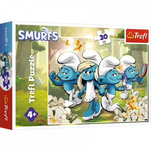 Detské puzzle s motívom Šmolkovia – dobrodružstvo ponúkne 30 pevných dielikov na zábavné skladanie. Hotový obrázok má rozmery 27 × 20 cm a je ideálny pre deti od 4 rokov.