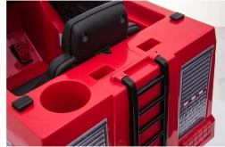 Vo vnútri vozidla je umiestnený otočný volant s tlačidlom pre štartovanie a prístrojová doska s napodobeninami meračov. Technické parametre zahŕňajú akumulátor 12V7 Ah a dva motory s výkonom 2x45W, ktoré umožňujú jazdu rýchlosťou 2 až 4 km/h. Gumové kolesá EVA poskytujú komfortnú jazdu na rôznych povrchoch.