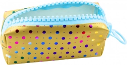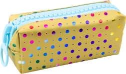 Školský peračník v zlatom prevedení s farebnými bodkami kombinuje moderný dizajn s praktickým riešením pre uskladnenie školských pomôcok. Jeho živý a vesele ladený dizajn robí peračník atraktívnym pre deti a mládež, ktoré si cenia originálneho štýlu.