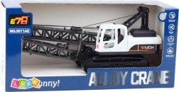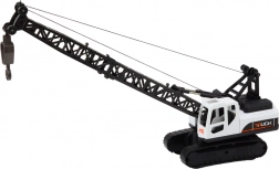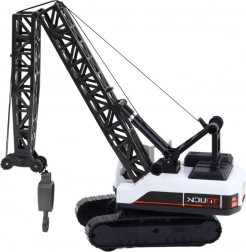 Žeriav má pohyblivé rameno s hákom, ktoré možno zdvíhať a spúšťať. Rameno žeriavu sa pohybuje na kĺboch a otočná základňa umožňuje plný otáč o 360°. Celá konštrukcia je postavená na pevnom pásovom podvozku, čo zvyšuje realizmus a stabilitu. Hračka je navrhnutá v bielo-čiernej farebnosti s detailmi napodobňujúcimi profesionálne stavebné vybavenie.