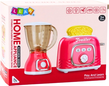 Perfektný hrací set pre deti, ktorý zahŕňa toastovač a mixér s efektmi svetla a zvuku, ideálny pre malých kuchárov, ktorí chcú napodobniť dospelých a milujú hravé kuchynské scény.