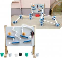 Táto vodná a piesková sada je perfektná pre malých objaviteľov. Skladá sa z dreveného stojanu a širokej škály príslušenstva, ktoré umožňujú deťom vytvárať vlastné konfigurácie. Kľúčové vlastnosti: