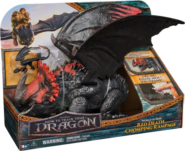 Preskúmajte svet Berk so setom, ktorý oživí vaše obľúbené filmové momenty. Stlačením tlačidla sa Red Death roztočí do akcie – máva potrhanými krídlami a zovrie mocné čeľuste. Umiestnite minifigúrku Bezzubky do tlamy, uvoľnite ju a objavte tajný schovávací priestor v bruchu draka pre ďalších minismokov.