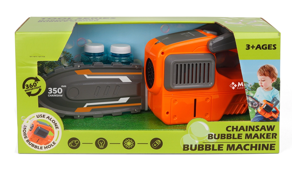 Nechajte deti preskúmať svoju predstavivosť s bublinkovou motorovou pílou, ktorá ponúka fascinujúce svetelné efekty. Táto hračka, dĺžka 35 cm, je jednoducho ovládateľná pomocou tlačidla umiestneného priamo na rukoväti.