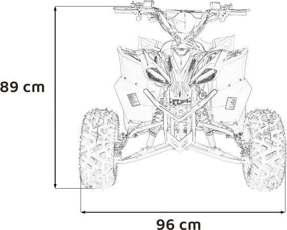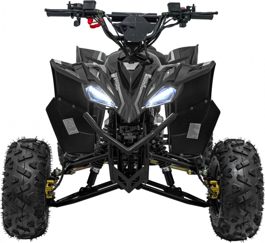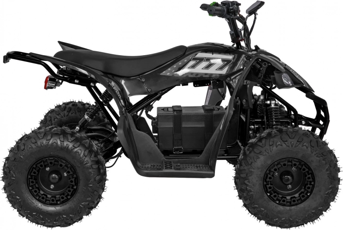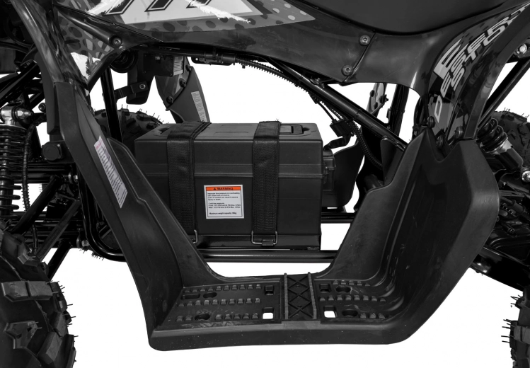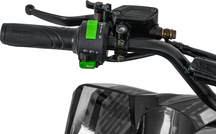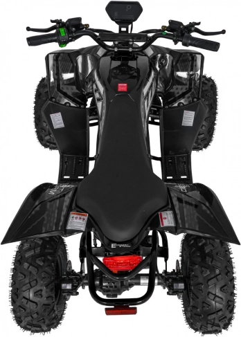 Bezkefkový motor 800 W napájaný batériou 48 V / 20 Ah poskytuje plynulý záťah, automatickú prevodovku (vpred/vzad) a jednoduché štartovanie na kľúč. Hydraulické kotúčové brzdy vpredu aj vzadu v spojení s nastaviteľným odpružením (2× predný + 1× zadný tlmič) zvyšujú bezpečnosť a komfort. Veľké pneumatiky s hrubým dezénom zaručujú trakciu v teréne a LED osvetlenie zlepšuje viditeľnosť.