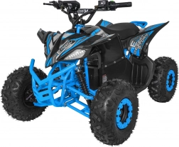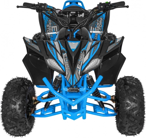 Elektrická štvorkolka DESERT STORM LIFT je postavená na pevnom práškom lakovanom ráme so zosilneným zadným ramenom a kvalitnými pružnými plastmi. Bezkefový motor 800 W v kombinácii s akumulátorom 48 V 20 Ah poskytuje plynulý záťah a efektívnu spotrebu energie. Maximálna rýchlosť dosahuje až 40 km/h, pričom automatická prevodovka s reverzom (vpred/vzad) zjednodušuje ovládanie.