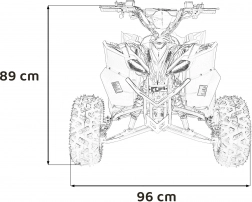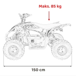 Pre komfort dlhších jázd nechýba mäkké vodoodolné sedlo s rozmerom 61 × 29 cm a praktické ovládanie kľúčikom. Štvorkolka je vhodná pre jazdcov do 85 kg, má svetlosť 19 cm a rozmery 150 × 96 × 89 cm, takže ponúka priestor, stabilitu aj potrebnú priechodnosť terénom.