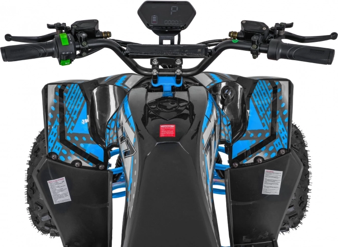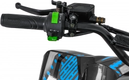Bezpečnosť a kontrolu zabezpečujú hydraulické kotúčové brzdy na oboch nápravách a nastaviteľné hydraulické tlmiče vpredu aj vzadu. Nafukovacie pneumatiky s hrubým dezénom vo veľkosti 16x8.0-7 poskytujú vynikajúcu trakciu a stabilitu v teréne. Prehľadný displej s rýchlomerom, počítadlom najazdenej vzdialenosti a ukazovateľom stavu batérie vám dáva kontrolu nad jazdou, zatiaľ čo osvetlenie s prednými LED a brzdovým svetlom zvyšuje viditeľnosť.