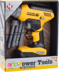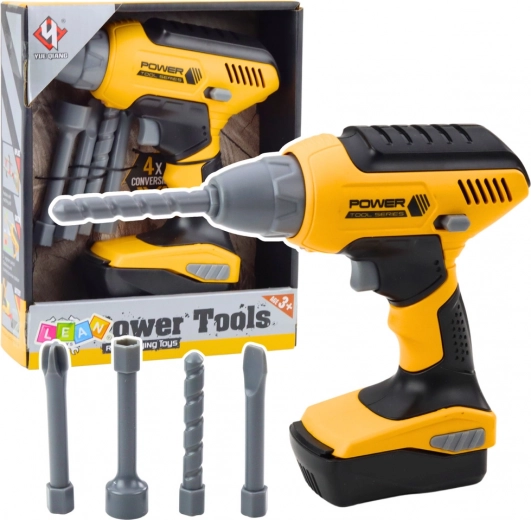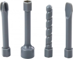 Súčasťou sady sú 4 vymeniteľné bity: vrták, plochý skrutkovač, krížový skrutkovač a kľúč. Deti môžu prispôsobiť nástroj pre svoje 'opravy'.