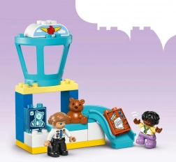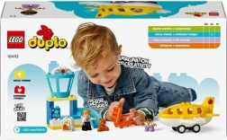 Podporte sebavedomie a zvedavosť detí s farebnou sadou LEGO DUPLO Prvý zážitok: Na letisku (10443). Lietadlo s odnímateľnou strechou, bezpečnostná kontrola, riadiaca veža a roztomilé figúrky (dieťa, pilot a medvedík) prinášajú hodiny kreatívnej hry, rozvoj jemnej motoriky aj učenie hrou.