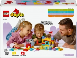 Táto šikovná 2 v 1 hra a stavebnica LEGO DUPLO prináša deťom zábavné učenie formou hry. Spoločne postavte farebný hrad, zatočte ukazovateľom a posúvajte zvieracie figúrky po hernom pláne. Podľa farby, na ktorej sa zastavíte, pridáte k hradu správny dielik – vyhráva tímový duch, keď všetky postavičky dorazia do hradu!