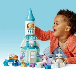 Objavte očarujúci ľadový zámok z filmu FROZEN, kde si deti môžu prehrávať obľúbené scény aj vymýšľať vlastné príbehy. Stavebnica prináša figúrky Elzy, Anny, Olafa, malého Svena a snehového obra Pushku, vďaka ktorým je hra na role ešte zábavnejšia. Svietiaca kocka vyčarí farebnú „polárnu žiaru“, zatiaľ čo otváracie dvere a textilné sukne princezien zapoja zmyslové vnímanie.