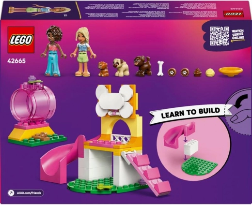 LEGO Friends ihrisko pre šteniatka: 66 dielikov, 2 minifigúrky, 3 psíkovia, šmýkačka, rebrík a tunel. Skvelý darček pre deti od 4 rokov s appkou LEGO Builder.