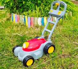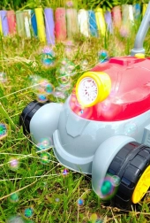 Táto detská bublinková kosačka ponúka dva herné režimy: prvý sa postará o nepretržité fúkanie bubliniek, druhý pridá svetlá a hudbu pre ešte väčšiu zábavu. Stačí naskrutkovať priložený roztok do spodnej časti, stlačiť tlačidlo a sledovať, ako sa predná časť „motora“ zmení na bublinovú show.