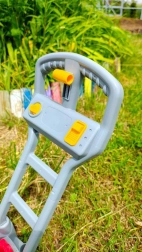 Ľahká konštrukcia, robustná rukoväť a veľké kolieska zabezpečujú jednoduché tlačenie po tráve aj pevných povrchoch. Hračka podporuje pohyb, fantáziu a role-play, takže je ideálna na vonkajšiu zábavu na záhrade, terase aj v parku.