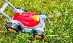Integrovaný bublifuk vytvára množstvo bubliniek z prednej časti kosačky. Roztok je súčasťou balenia – môžete začať hneď.