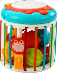 Interaktívna kocka je vybavená funkciami ako tvarový triedič, tlačové prvky, tyče na pretlačovanie kociek a hudobný panel so svetelnými a zvukovými efektmi. Na vrchnej časti je líška s bubnom, ktorá aktivuje zvuk po stlačení. Kocka prehráva rôzne zvuky a melódie, ktoré obohacujú sluchové vnímanie dieťaťa a motivujú ho k aktivite.