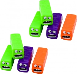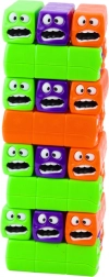 Veža z 24 plastových kociek s odošprtnenými tvárami roztomilých chrobáčikov v troch výrazných farbách: zelenej, oranžovej a fialovej. Zábavná hra pre skladanie veže a vyťahovanie kociek zospodu, bez toho aby sa zrútila. Jednoduché pravidlá prinášajú dostatok emócií a smiechu aj pre najmenších.