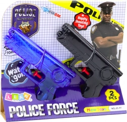 Táto súprava obsahuje dve vodné pištole, ktoré sú ideálne pre aktívnu a zábavnú hru na čerstvom vzduchu. Deti môžu predstierať, že sú policajti a hrať sa vo vodných bojoch v záhrade, na pláži alebo na ihrisku. Vyrobené z vysoko kvalitného plastu, ktorý je odolný proti mechanickým poškodeniam a bezpečný v styku s vodou.