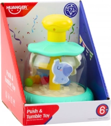 Báček Kolotoč je ideálna hračka pre malých objavovateľov. Po stlačení žltého tlačidla sa hračka začne točiť, a zvieratká sa pohybujú okolo vlastnej osi, čo vytvára dynamický a farebný efekt. Táto hračka pomáha rozvíjať zručnosti ako je zraková a sluchová koordinácia, rovnako ako súvislosti medzi príčinou a následkom.