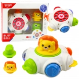 Centrom hračky je roztomilá figúrka leva a krokodíla, ktoré možno medzi sebou meniť a otáčať. Okolo nich nájdete tlačidlá, otočné disky a vyberateľné kocky s rôznymi textúrami a farbami. Každý prvok je navrhnutý tak, aby stimuloval detské zmysly – zrak, sluch a hmat – a poskytoval radosť z objavovania nových funkcií.