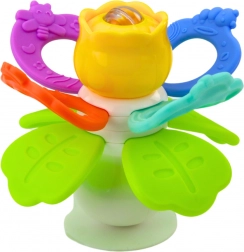 Detská senzorická hračka Kvet je vybavená pevnou prísavkou, ktorá umožňuje stabilné umiestnenie na hladké povrchy ako je stôl alebo jedálenská stolička, zabezpečujúc tak bezpečnú a komfortnú hru.