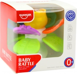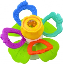Otočná stredová časť kvetu podnieti dieťa k aktivite a posilňovaniu rúk. Farebné lístky sú vyrobené z mäkkého, elastického materiálu, ktorý je vhodný na hryzenie ideálny počas obdobia prerezávania zubov. Obohatené drobnými guličkami vo vnútri kvetu, ktoré jemne hrkajú pri pohybe a stimulujú detský sluch aj zrak.