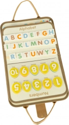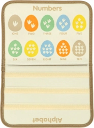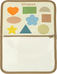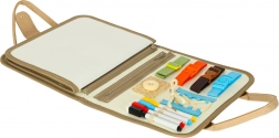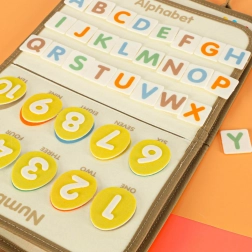 Vzdelávacie možnosti: Vo vnútri kufríka nájdete plstené stránky na prišívanie, výučbové karty s písmenami a číslami a mazaľu dosku na kreatívne činnosti.