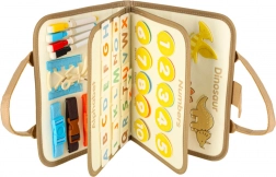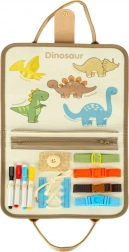 Montessori senzorický kufrík s dinosaurami kombinuje radosť z objavovania so vzdelávaním. Pomocou prackov, zipsov, gombíkov a ďalších súčastí si deti môžu precvičovať vlastné zručnosti zábavným spôsobom. Tento kompaktný a vizuálne atraktívny kufrík je ideálny pre domáce alebo cestovné použitie.