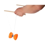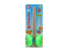 Veľké diabolo s robustnými plastovými miskami a drevenými paličkami prináša veľa zábavy aj tréningu motoriky. Vďaka širokým miskám a stabilnej osi je diabolo veľmi stabilné, dobre drží rýchlosť a odpúšťa chyby – ideálne na učenie aj rozvoj trikov.